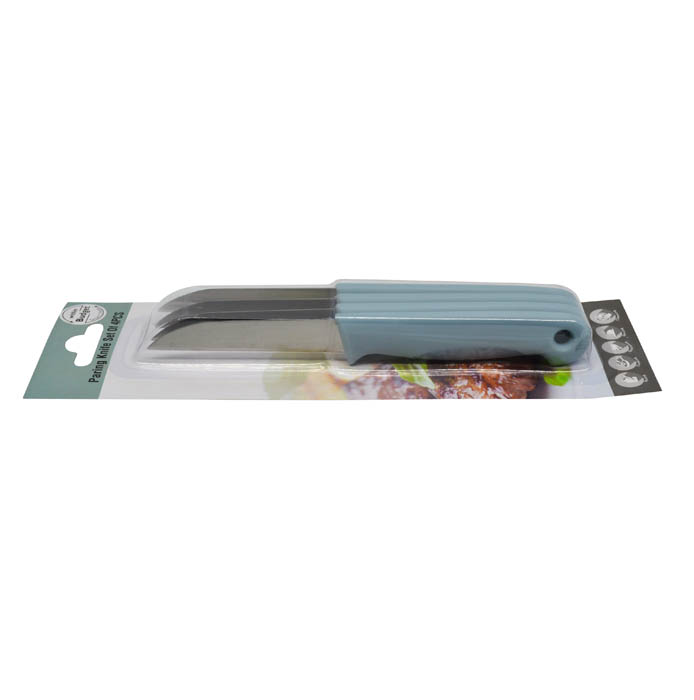 Σετ 4 τεμαχίων μαχαίρια με ανοξείδωτη λεπίδα και πλαστική λαβή σε γαλάζιο χρώμα. Μαχαίρια υψηλής ποιότητα με εργονομική λαβή, απλό σχεδιασμό και αντοχή στον χρόνο, ιδανικά για κάθε κουζίνα.
