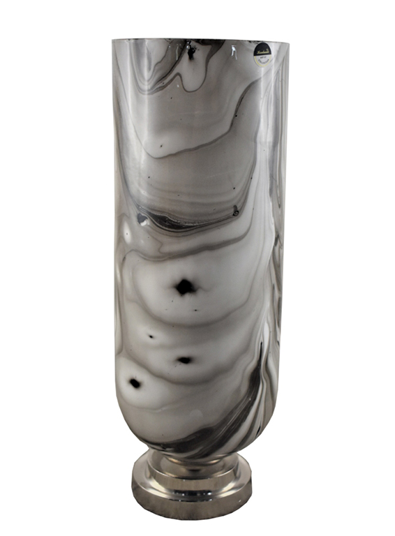 Διακοσμητικό γυάλινο χρώμα μαρμάρου βάζο και βάση από νίκελ.