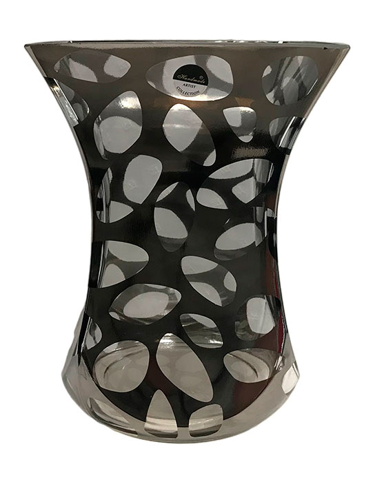 Βάζο διάφανο γυάλινο διακοσμητικό με ασημί αποχρώσεις.