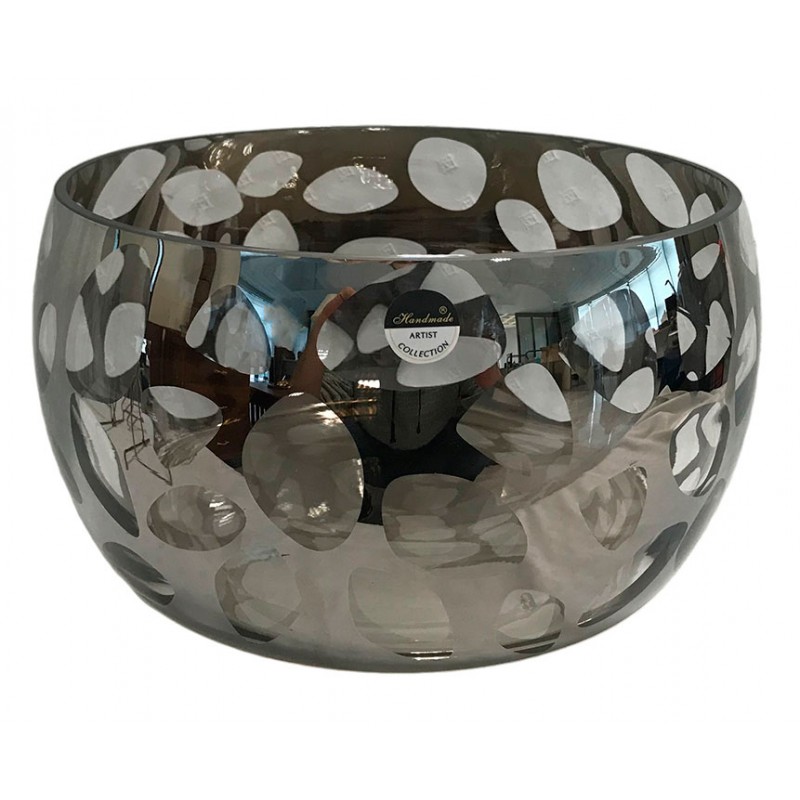 Κουπ διάφανο γυάλινο διακοσμητικό με ασημί αποχρώσεις.
