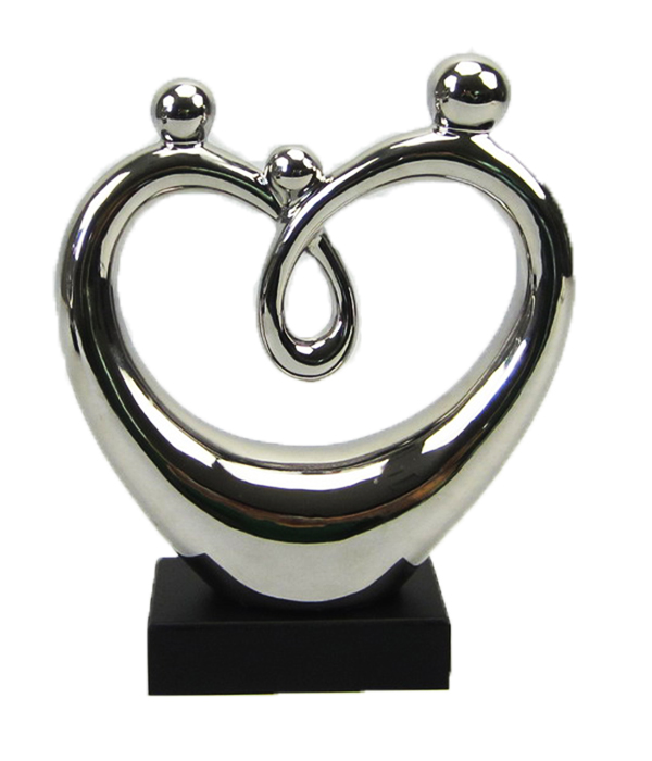 Κεραμική διακοσμητική φιγούρα ζευγάρι καρδιά, σε ασημί χρώμα και μαύρη ξύλινη βάση.