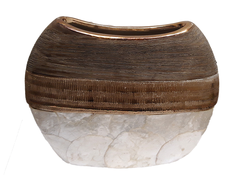 Διακοσμητικό κεραμικό βάζο πλακέ με λεπτομέρειες από φίλντισι σε χρυσό/λευκό χρώμα.25x7.5x19.5εκ.