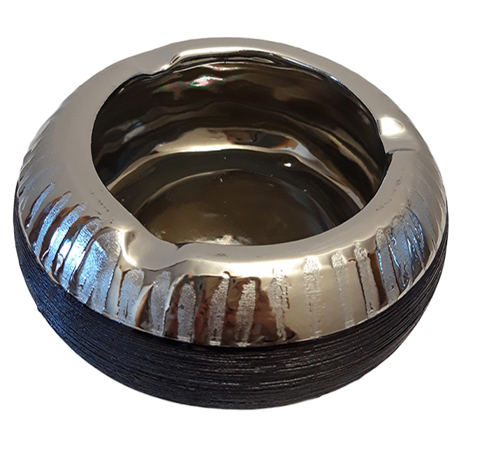 Τασάκι κεραμικό ασημί χρώμα με λεπτομέρεια μαύρη λωρίδα.15x15x4εκ.
