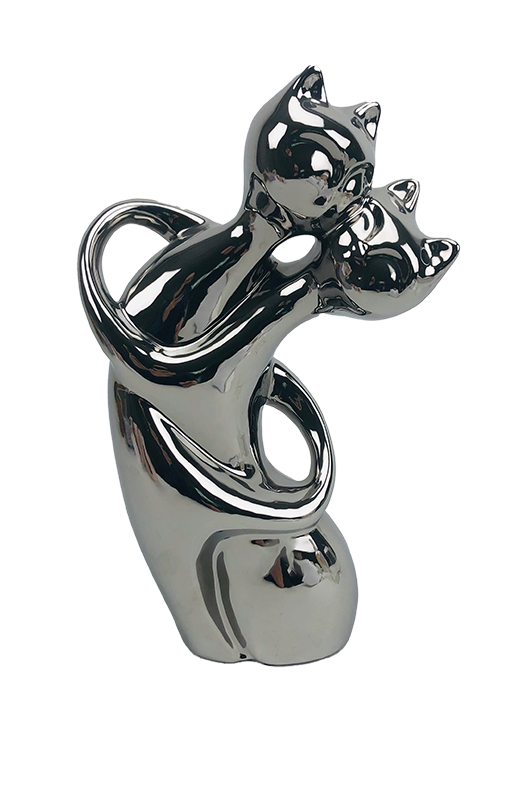 Διακοσμητικές Κεραμικές Γάτες Αγκαλιά Ασημί 16X7.5X24.5εκ.