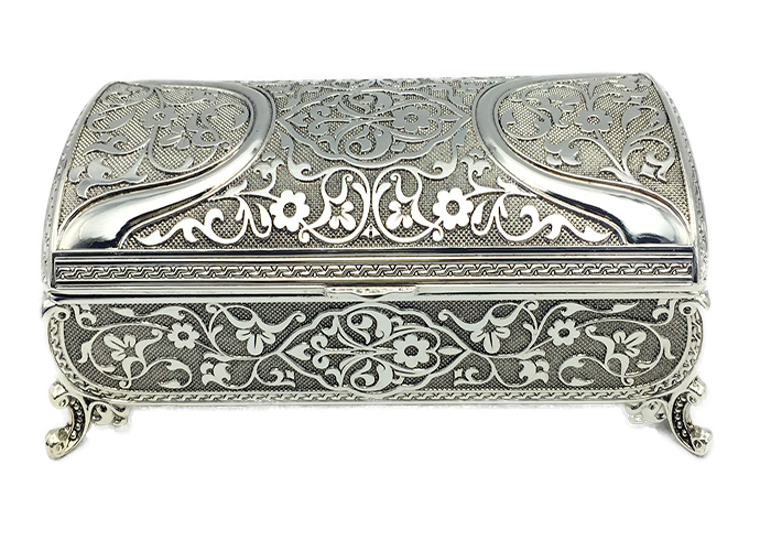 Μπιζουτιέρα επάργυρη ορθογώνια 5'', με ανάγλυφα σχέδια.