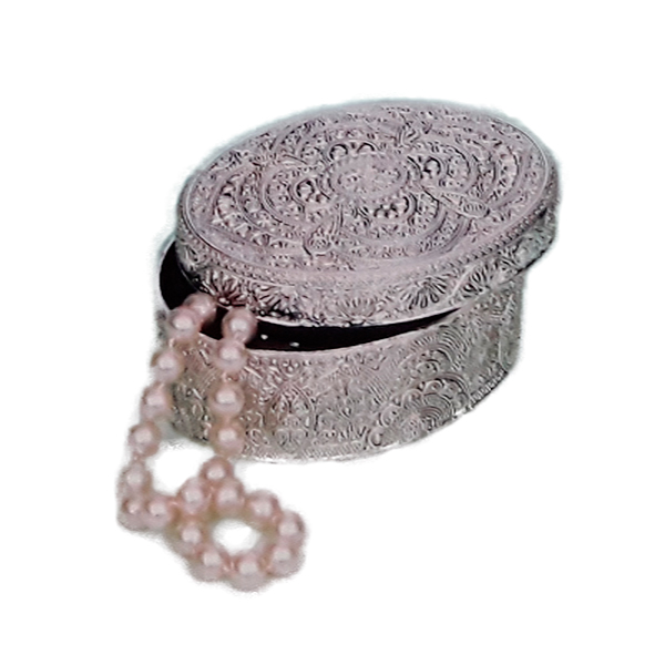 Μπιζουτιέρα επάργυρη λακαριστή, με ανάγλυφα σχέδια.