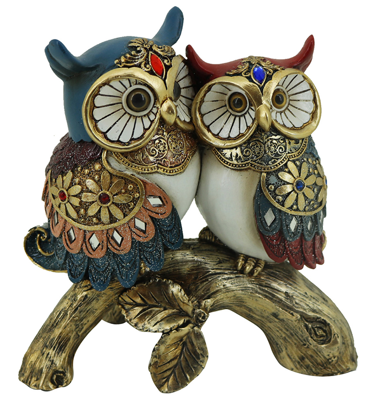 Επιτραπέζια Διακοσμητική Polyresin Κουκουβάγια Ζευγάρι Σε Κορμό Δέντρου 17x8.5x17εκ.