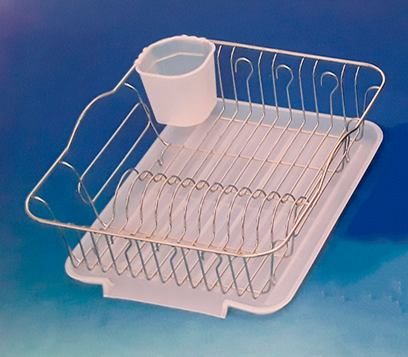 Πιατοθήκη μεταλλική χρωμίου με πλαστικό δίσκο, που διαθέτει ειδική θέση για ποτήρια και μαχαιροπίρουνα.