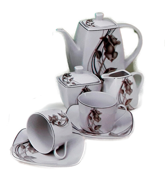 Σερβίτσιο τσαγιού 15 τεμαχίων από υψηλής ποιότητας πορσελάνης, με διακοσμητικά λουλούδια.Το σετ αποτελείται: 6 φλυτζάνια του τσαγιού, 6 πιατάκια,1 τσαγιέρα, 1 γαλατιέρα, 1 ζαχαριέρα.