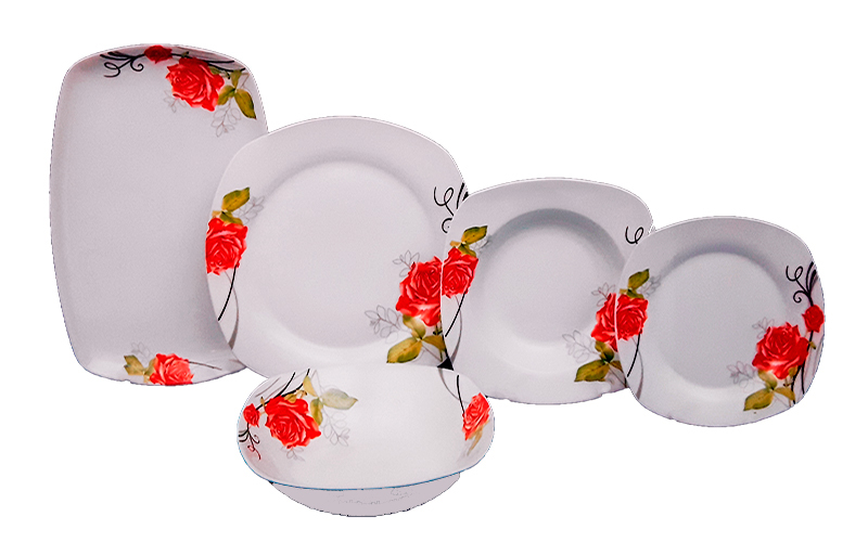 Σερβίτσιο φαγητού 20 τεμαχίων από υψηλής ποιότητας πορσελάνης με διακοσμητικά κόκκινα τριαντάφυλλα.Το σετ αποτελείται:1 Πιατέλα1 Σαλατιέρα6 Πιάτα Βαθιά6 Πιάτα Ρηχά6 Πιάτα Φρούτου