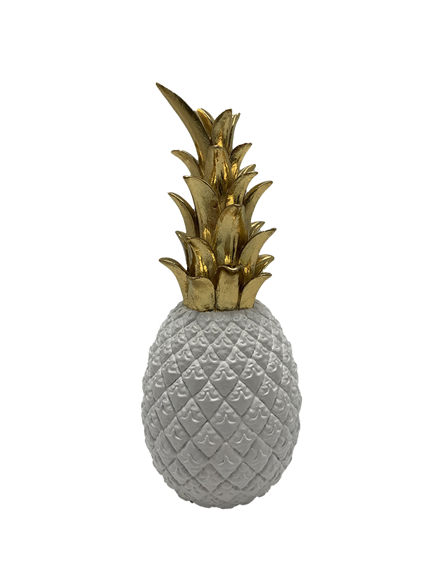 Διακοσμητικός Ανανάς Polyresin Χρυσός-Λευκός με ανάγλυφο σχέδιο 11.5x11.5x28cm.
