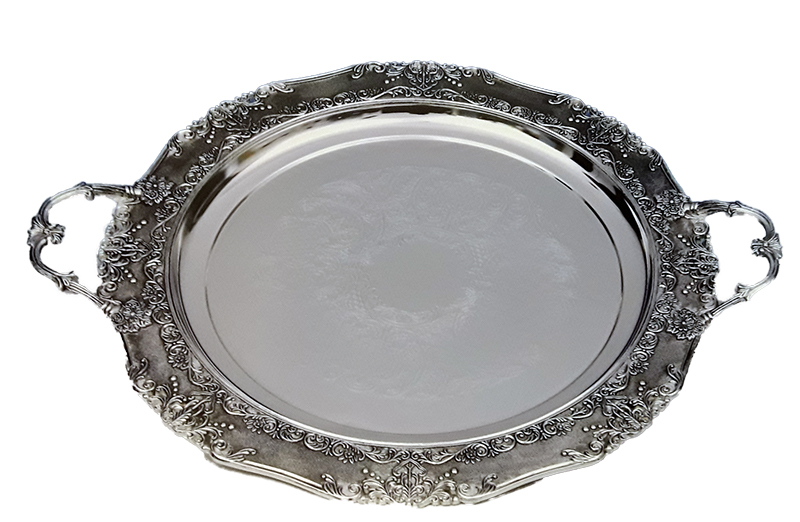 Δίσκος Σερβιρίσματος Επάργυρος στρογγυλός με λαβές 50εκ.Το προϊόν είναι περασμένο με λάκα έτσι ώστε να μην φθείρεται με το πέρασμα του χρόνου.