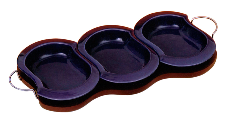 Ορντεβιέρα κεραμική μοβ απόχρωσης 3 θέσεων σε ξύλινο δίσκο.