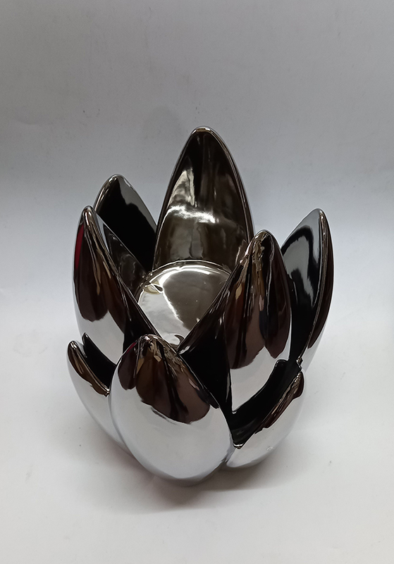 Κεραμικό Διακοσμητικό Ασημί Νούφαρο  16.5x16.5x24cm