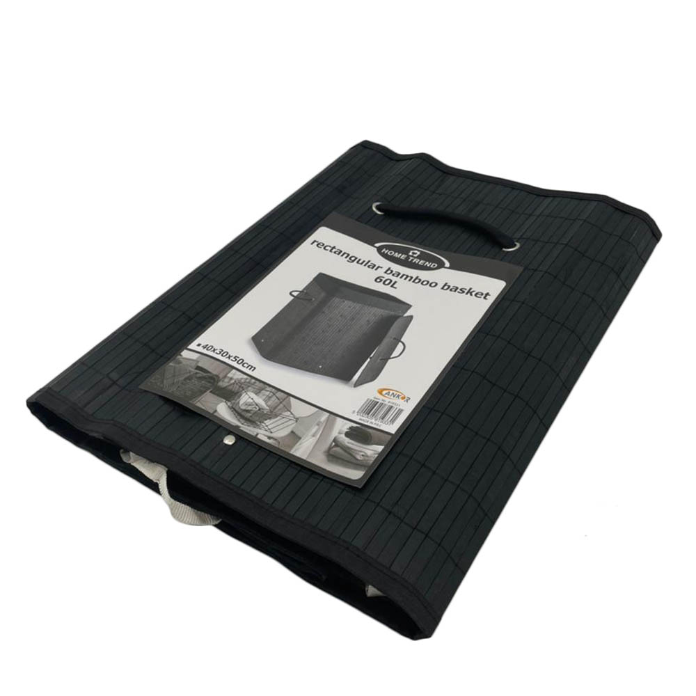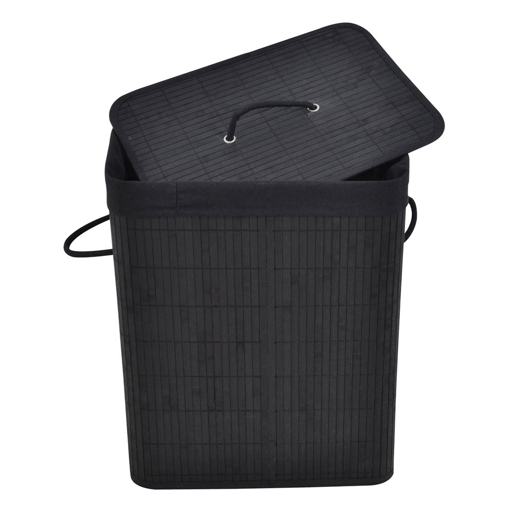Καλάθι άπλυτών με καπάκι, από ξύλο μπαμπού σε μαύρο χρώμα, ιδιαίτερα ανθεκτικό στον χρόνο και αφαιρούμενο σάκο.H σύνθεση του υφάσματος είναι από βαμβακερό λινό κ πολυεστέρα.Είναι αναδιπλούμενο για εύκολη αποθήκευση και διαθέτει λαβές για εύκολη μεταφορά.. Διάσταση όταν είναι διπλωμένο: 45x50x4εκ.