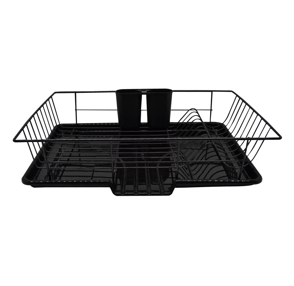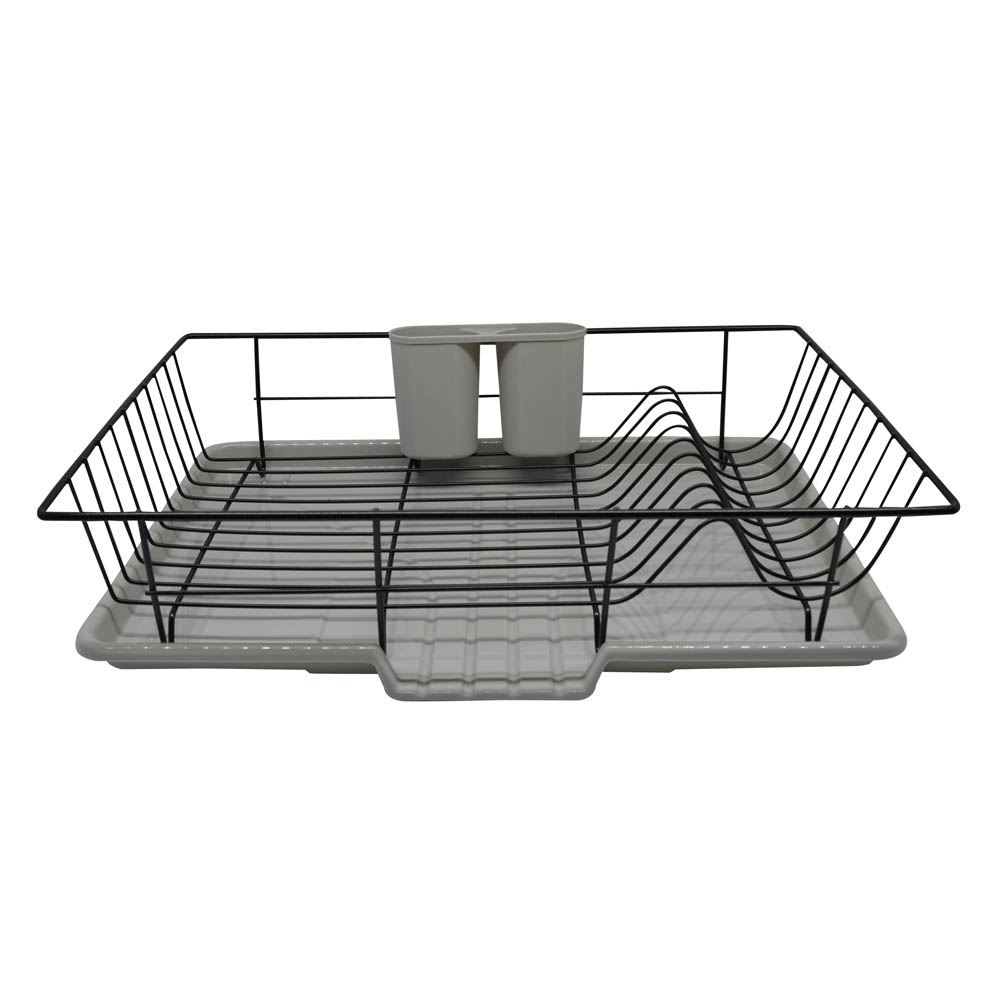 Πιατοθήκη μεταλλική με πλαστικό δίσκο και κουταλοθήκη σε μαύρο ματ χρώμα. Διαθέτει στόμιο αποστράγγισης το οποίο εμποδίζει τη συγκέντρωση νερού μέσα στο δίσκο. Πλένεται και καθαρίζεται εύκολα.. Χρηστικά αντικείμενα για την κουζίνα σας, κομψά και μοντέρνα καθημερινής χρήσης σε λιτές γραμμές. Συνδυάστε τα με τα υπόλοιπα αντικείμενα της σειράς και ανανεώστε τον χώρο σας. Πιατοθήκη μεταλλική σε μαύρο ματ χρώμα με πλαστικό δίσκο και κουταλοθήκη σε γκρι χρώμα.