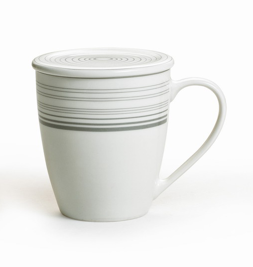 Κούπα Πορσελάνης New Bone 360ml Με Καπάκι Σχέδιο Ασημί Κύκλοι.