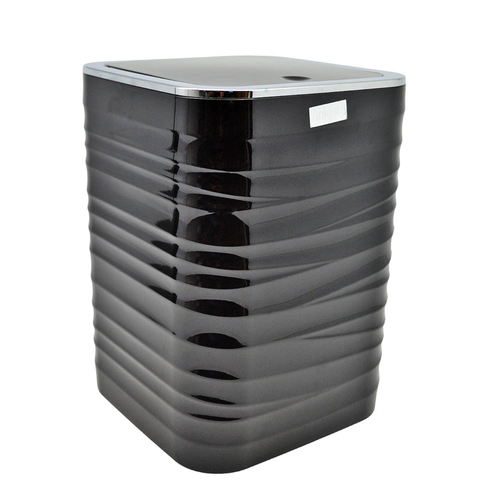 Κάδος απορριμμάτων πλαστικός,σε μαύρο χρώμα με ανάγλυφη διακόσμηση γραμμές κ ασημί πλαίσιο στο καπάκι.Εκτός από το μπάνιο μπορεί να χρησιμοποιηθεί οπουδήποτε, όπως...