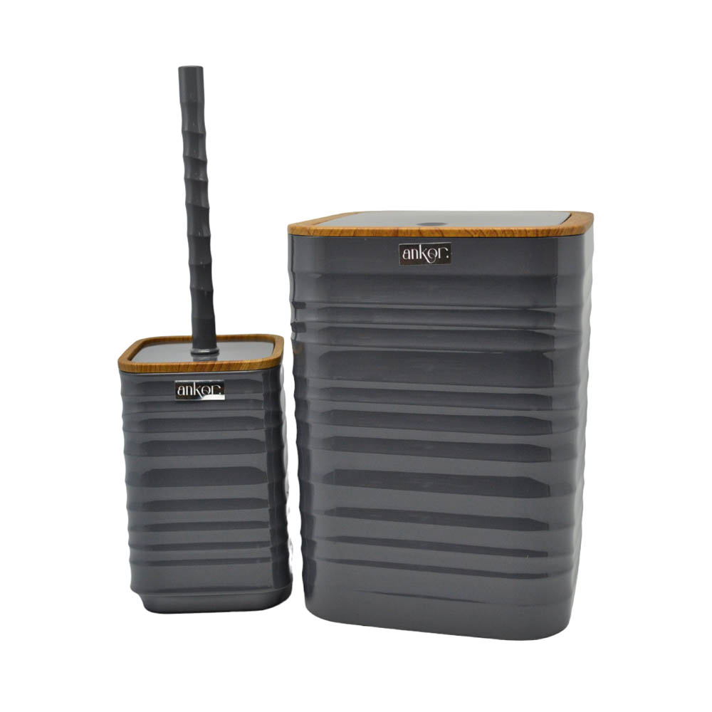 Πιγκάλ πλαστικό σε γκρι χρώμα με ανάγλυφη διακόσμηση γραμμές και εφέ ξύλου στο καπάκι. Διαθέτει μαύρο βουρτσάκι υψηλής αντοχής στο χρόνο..