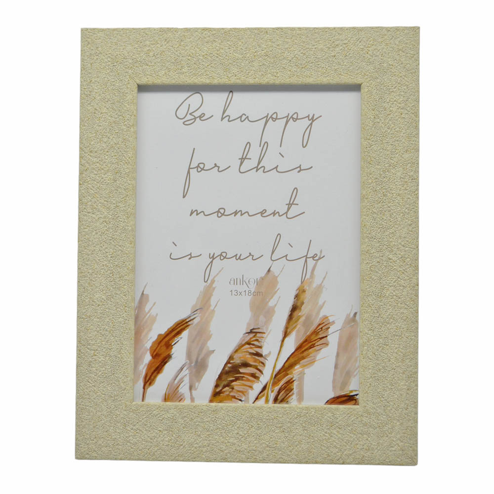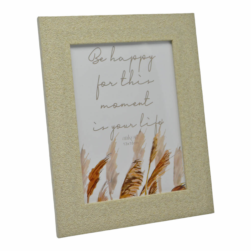 Κορνίζα πλαστική σε μπεζ χρώμα και σαγρέ υφή. Περιστρέφεται δίνοντας τη δυνατότητα τοποθέτησης οριζόντιας ή κάθετης φωτογραφίας κ κρεμιέται στον τοίχο.