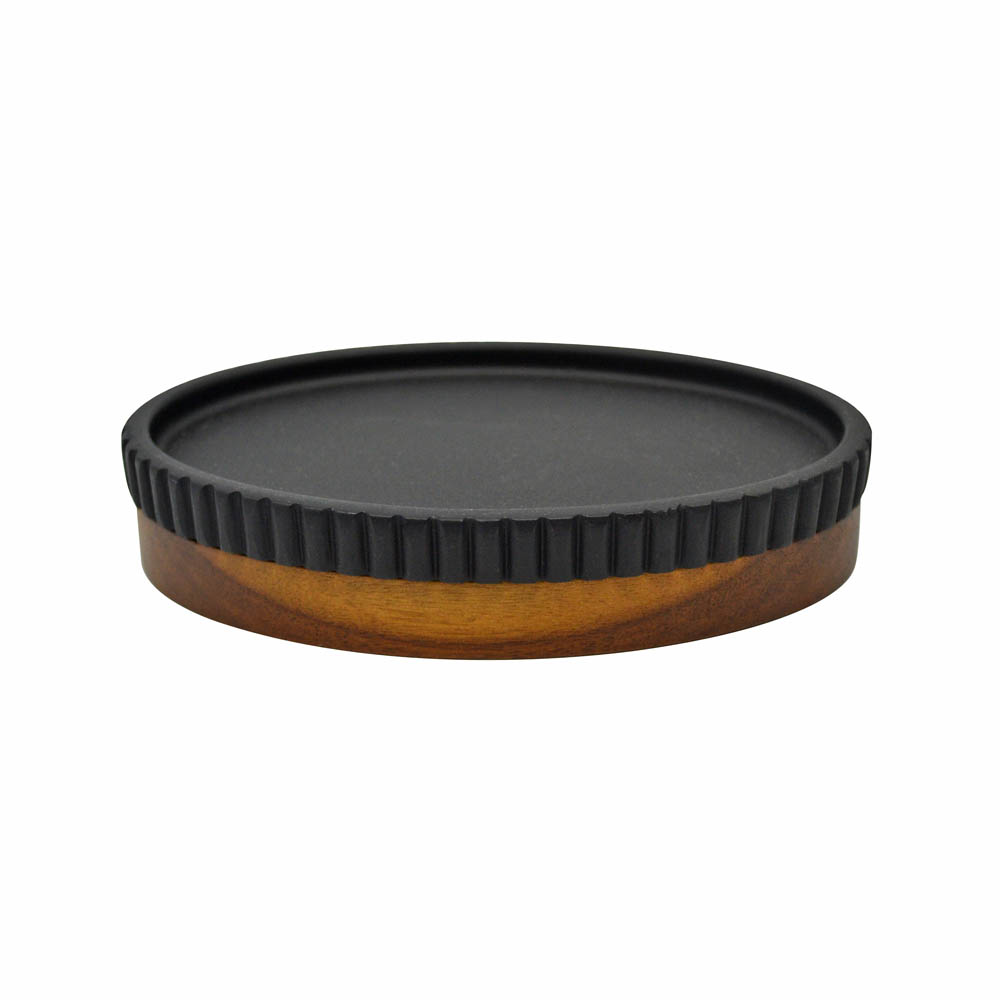 Σαπουνοθήκη πολυεστερική σε μαύρο χρώμα με διακόσμηση ανάγλυφες γραμμές και ξύλο ακακίας στο κάτω μέρος. Αξεσουάρ μπάνιου εξαιρετικής ποιότητας με μοντέρνο και κομψό σχεδιασμό. Συνδυάστε τα ιδανικά με αντικείμενα της υπόλοιπης σειράς.