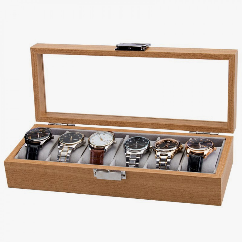 Θήκη 6 Ρολογιών Με Βελούδινο Εσωτρικό Χρώμα Ανοιχτό Καφέ 31 x 12 x 7.5 cm Maripel PDMDF04
