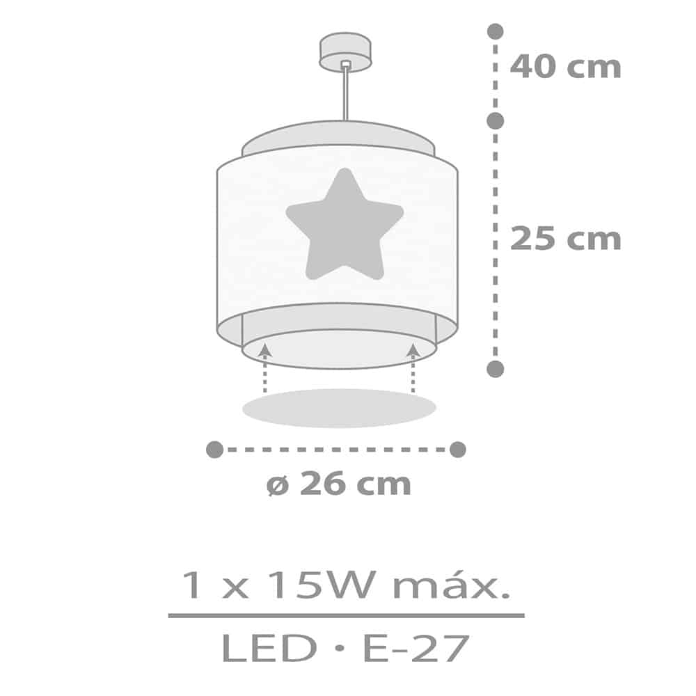 Καλωσορίστε το παιδί σας σε ένα δωμάτιο πλημμυρισμένο από μαγεία με αυτό το παιδικό φωτιστικό οροφής με διακριτικό θέμα και απαλά χρώματα. To Baby Dreams Blue παιδικό φωτιστικό οροφής είναι κατάλληλο για γενικό φωτισμό. Είναι διπλού τοιχώματος, με διάφανο το εξωτερικό του τοίχωμα και μαγικά φωσφορίζοντα μέρη στο σκοτάδι. Κατασκευασμένο από συνθετικό υλικό αντοχής πολυπροπυλενίου και ανεξίτηλες εκτυπώσεις. Παρέχεται διαχυτής φωτός για τις μικρότερες ηλικίες προσφέροντας ομοιόμορφο φωτισμό. Το κιτ ανάρτησης είναι πλήρες και περιέχει σετ γάντζου, καλώδιο ρυθμιζόμενο στο ύψος καθώς και ροζέτα κάλυψης σημείων σύνδεσης & στήριξης. Το Baby Dreams Blue παιδικό φωτιστικό οροφής τοποθετείται εύκολα και είναι κατασκευασμένο εξ ολοκλήρου στην Ευρώπη.