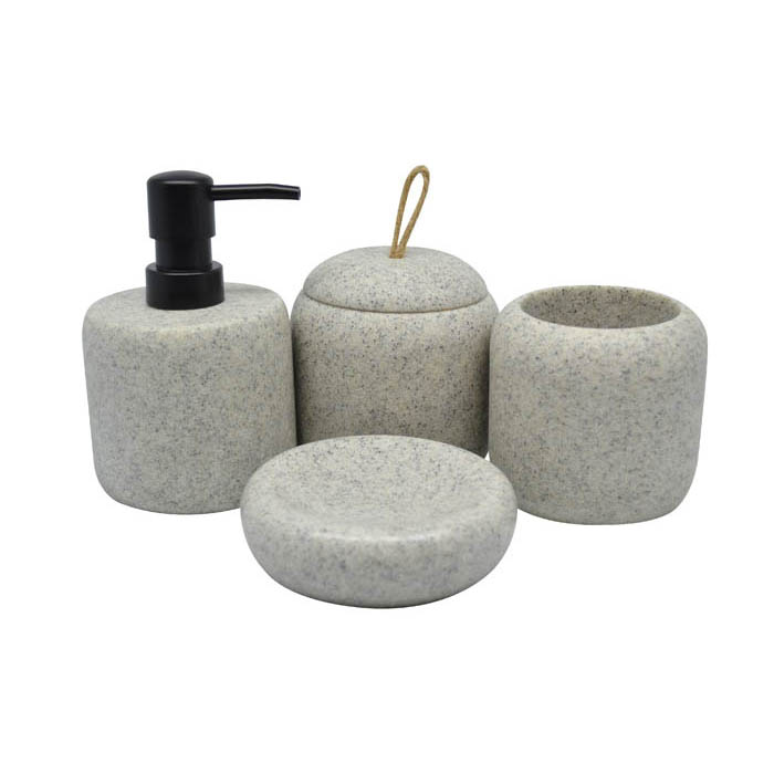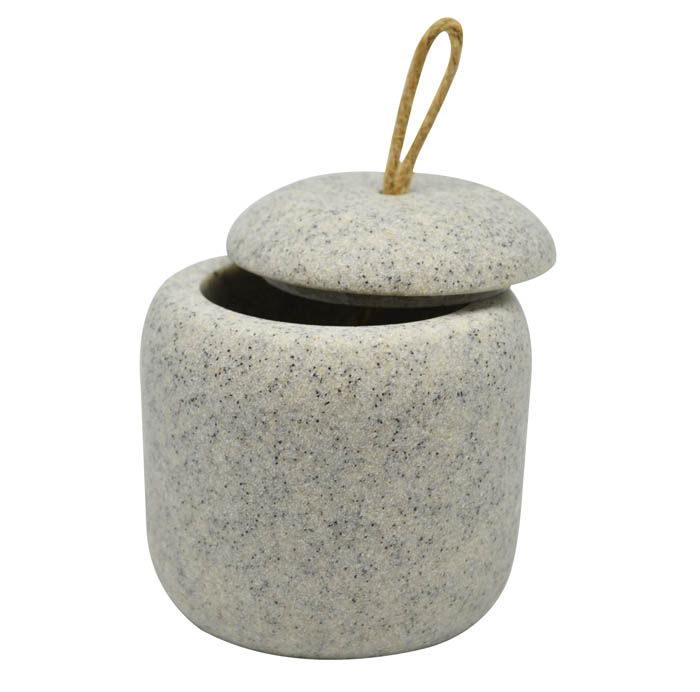 Δοχείο με καπάκι για βαμβάκι ή μπατονέτες, πολυεστερικό και εφέ γκρι πέτρας. Αξεσουάρ μπάνιου εξαιρετικής ποιότητας με μοντέρνο και κομψό σχεδιασμό. Συνδυάστε τα ιδανικά με αντικείμενα της υπόλοιπης σειράς.