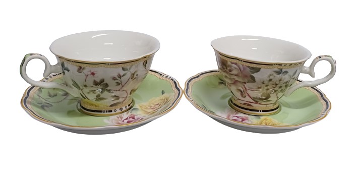 Σετ φλυτζάνια τσαγιού πορσελάνης 2 τεμαχίων Green Yellow Flowers από υψηλής ποιότητας πορσελάνης, σε πολυτελή συσκευασία δώρου.Κατάλληλη για το πλυντήριο πιάτων.