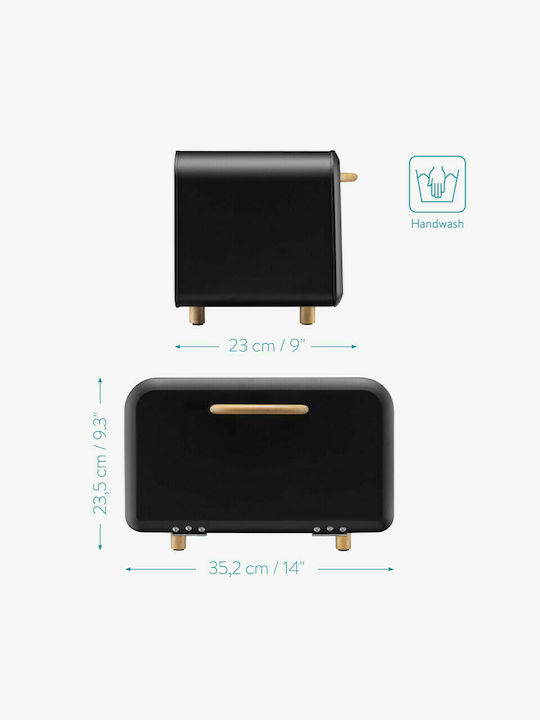 Navaris Ψωμιέρα με Καπάκι Μεταλλική σε Μαύρο Χρώμα 35.2x23x23.5cm