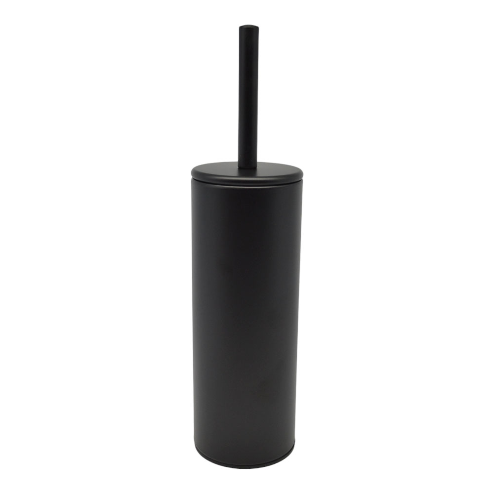Πιγκάλ ανοξείδωτο σε μαύρο ματ χρώμα, μαύρο βουρτσάκι υψηλής αντοχής στο χρόνο, μαύρο ματ καπάκι και μαύρη πλαστική βάση για αποφυγή φθοράς του δαπέδου.