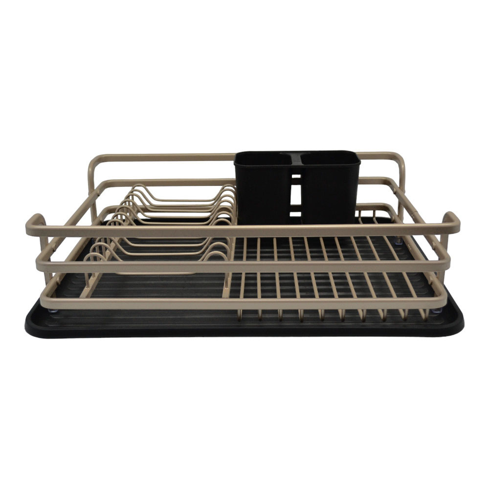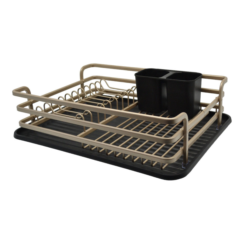 Πιατοθήκη αλουμινίου σε σαμπανιζέ χρώμα, με πλαστικό δίσκο και κουταλοθήκη σε μαύρο χρώμα. Πλένεται και καθαρίζεται εύκολα.. Χρηστικά αντικείμενα για την κουζίνα σας, κομψά και μοντέρνα καθημερινής χρήσης σε λιτές γραμμές. Συνδυάστε τα με τα υπόλοιπα αντικείμενα της σειράς και ανανεώστε τον χώρο σας.