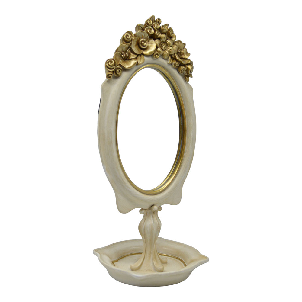 Καθρέφτης επιτραπέζιος πολυεστερικός με χρυσές ανάγλυφες λεπτομέρειες στο επάνω μέρος του πλαισίου. Με τη ρομαντική και vintage αισθητική του, είναι ιδανικός για να...