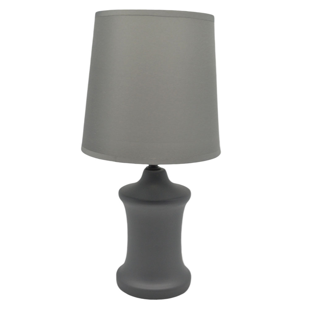 Πορτατίφ κεραμικό με μοντέρνο σχεδιασμό και υφασμάτινο καπέλο σε γκρι χρώμα. Κατάλληλο για λαμπτήρα Ε14 ΜΑΧ 40W, ο οποίος δεν περιλαμβάνεται στη συσκευασία.
