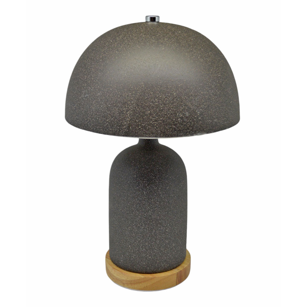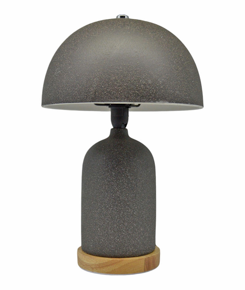 Πορτατίφ κεραμικό με κεραμικό καπέλο σε γκρι χρώμα, σαγρέ υφή και ξύλινη βάση. Κατάλληλο για λαμπτήρα Ε14 ΜΑΧ 40W, ο οποίος δεν περιλαμβάνεται στη συσκευασία.