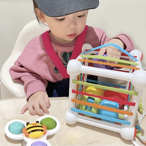 FLEXIBLE SENSORY CUBE EDUCATIONAL - the sensory sorting container is perfect for teaching your child early concepts of input and output, thinking and concentration. Your child can shake it, use it as a sorter, and remove the blocks. RATTLE BLOCKS – the sorter comes with blocks of different sizes, structures, colors, and numbers. This allows the child to learn by exploring. Additionally, the blocks are also rattles. FLEXIBLE WALLS - the elastic cube is a toy that stimulates the child's senses. The child inserts and removes blocks through elastic walls made of rubber develops faster your manual skills . SAFE MATERIAL - the sensory toy for children is made of high quality ABS material, BPA free, drop resistant, non-toxic and safe for babies. All edges are polished to a smooth shape that will not hurt the baby. SPECIFICATION - material: ABS, others: polyester + flexible synthetic fiber) + 6 blocks (PP); color: multicolor; age: + 12 m; material: ABS, rubber, plastic; dimensions: 15x15x15cm; weight: 299g; weight in packaging: 402g;