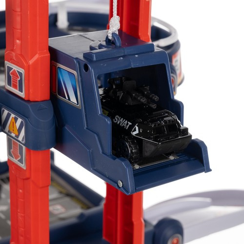 PARKING / GARAGE 4 LEVELS HIGH QUALITY AND DURABILITY OF MATERIALS - The toy garage has 4 levels, made of solid and durable PP and ABS materials, which ensures longevity and safety of use. Every element, from the parking lot on each level to the track and safety barriers, has been carefully designed...