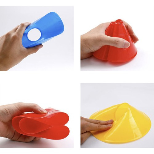 5 colors of training discs allows for division for individual exercises, players or groups . In a simple, fast and exceptionally clear way, you can therefore arrange the training space. Training cones have intense colors: yellow, orange, red, green and blue.